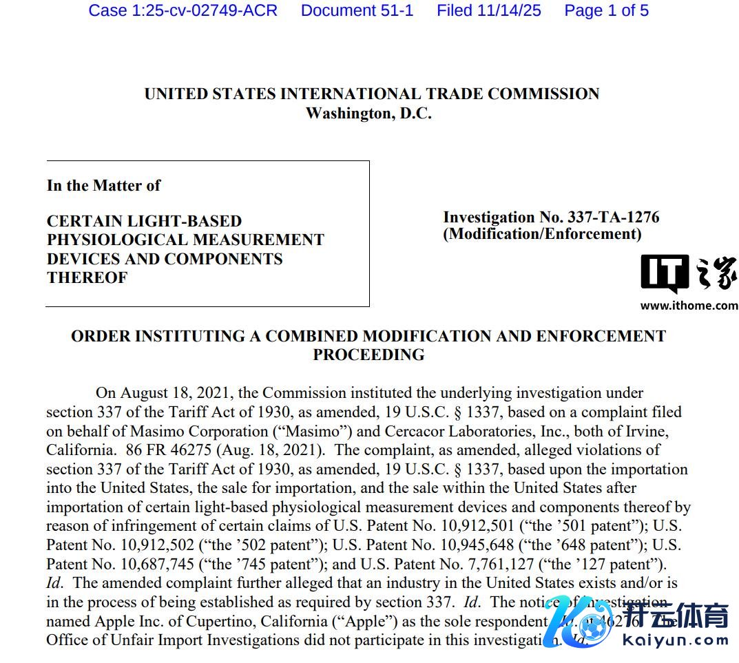 IT之家 11 月 15 日音问,科技媒体 9to5Mac 昨日(11 月 14 日)发布博文开云(中国)Kaiyun·体育官方网站-登录入口,报谈称因与健康科技公司 Masimo 的专利纠纷, Apple Watch 的血氧功能再次靠近好意思国国外交易委员会(ITC)的审查。