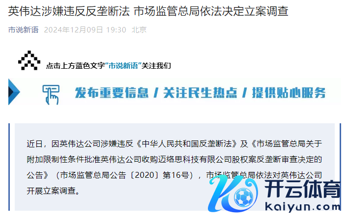 扫尾咫尺,英伟达尚未对中国市集监管总局的访问发表褒贬。