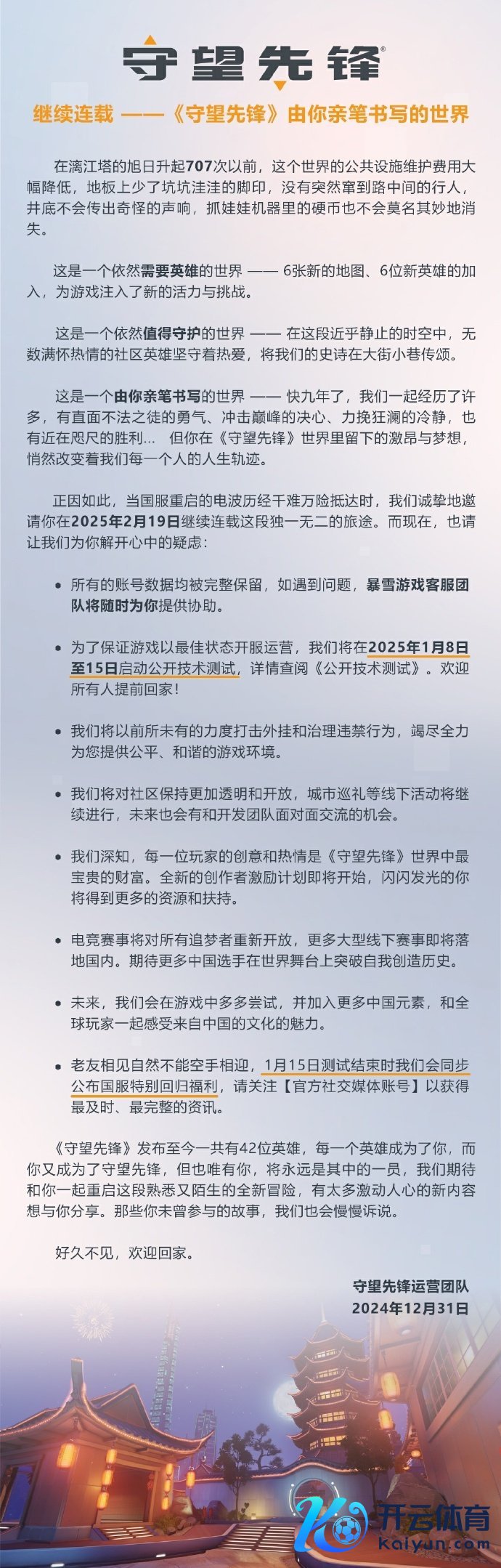 开云体育(中国)官方网站测试截至后将同步公布国服福利践诺-开云(中国)Kaiyun·体育官方网站-登录入口
