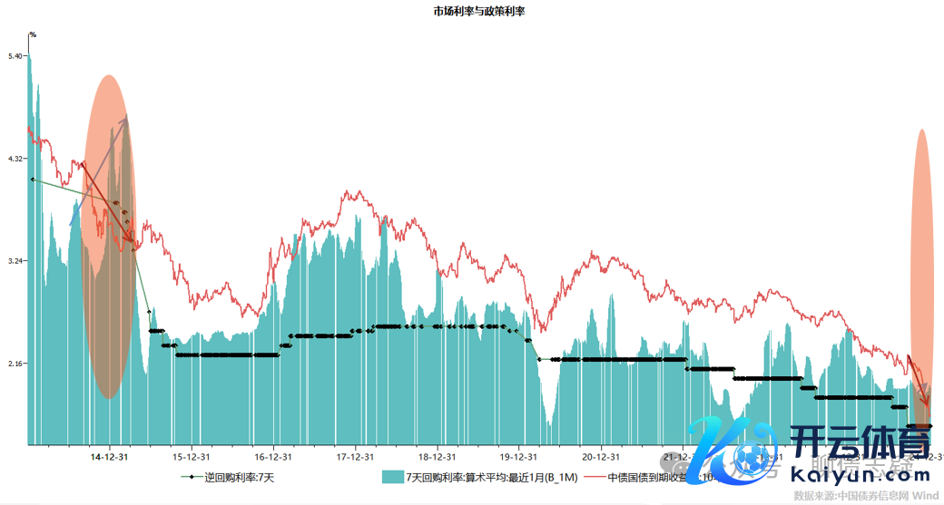 2、看资金价钱与长债利率的背离情况,近十年国内利率史,也独一在刚刚发生“钱荒”时的2014岁首阅历过。