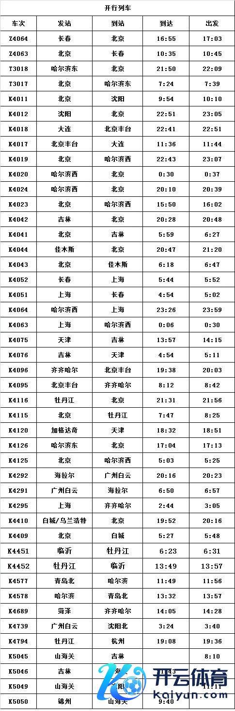 春运本领,大连~北京K580、K579次;吉林~青岛北K1056、K1055次淡季停运列车复原开行。
