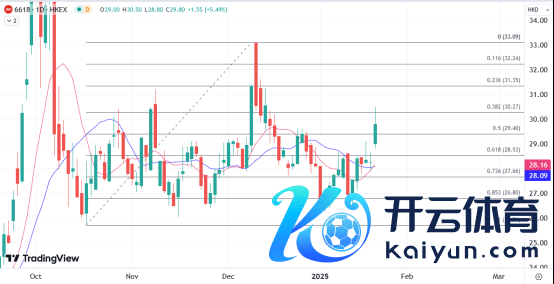 ATFX港股:京东系今早急升,因京东健康(06618)此前初次发布医疗大模子居品体系「AI京医」,刺激京东健康一度明见30.5元,炒高8%,午后仍是守住进步5%的涨幅,达到逾一个月的高位;京东股价(09618)也一度飙高8%。
