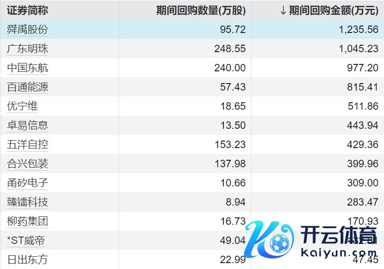 15家上市公司股票获回购,舜禹股份回购金额最高15家上市公司股票获回购,舜禹股份回购金额最高