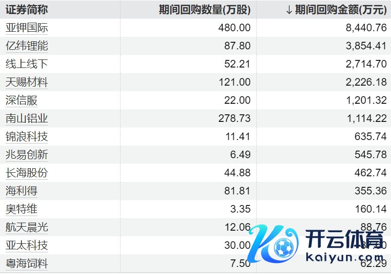 15家上市公司股票获回购,亚钾海外回购金额最高15家上市公司股票获回购,亚钾海外回购金额最高