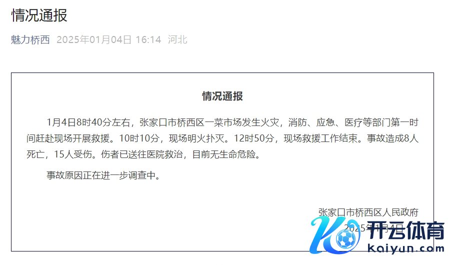 河北张家口市一菜市集发生失火 已致8东说念主遭难15东说念主受伤体育游戏app平台河北张家口市一菜市集发生失火 已致8东说念主遭难15东说念主受伤