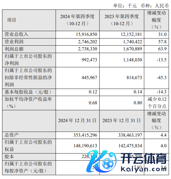 2月11日晚间欧洲杯体育,中芯海外发布事迹快报,2024年第四季度交易收入为159.17亿元,同比增长31.0%;包摄于上市公司鼓励的净利润为9.92亿元,同比下降13.5%。