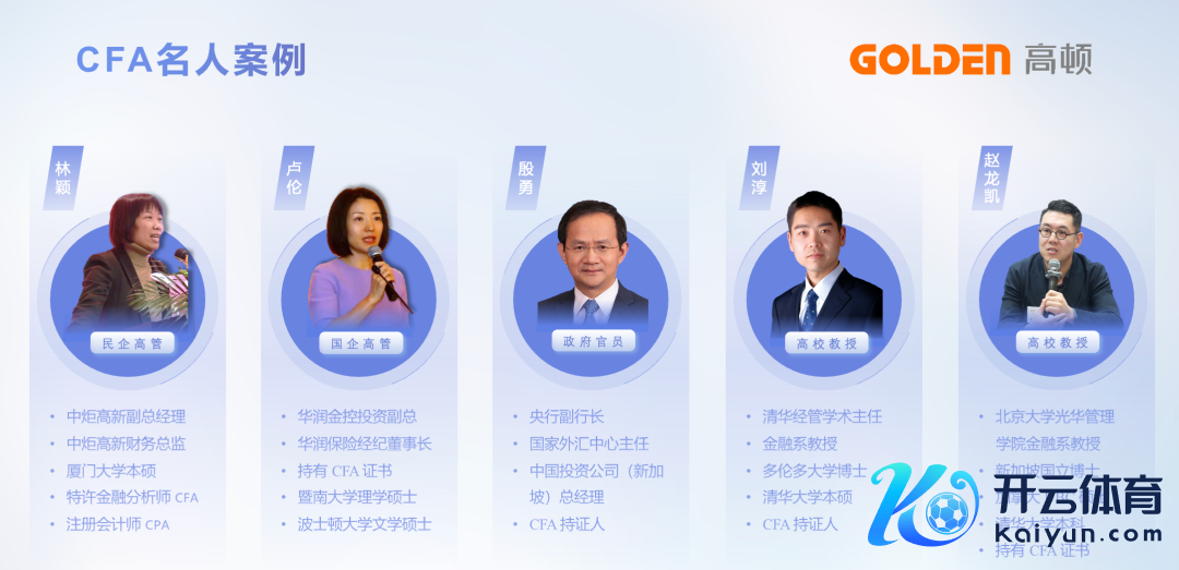 挂念CFA名东谈主堂,你会发现他们不仅世俗离别于各大金融名企,从事着基金司理、投资分析师、风险搞定师等高薪岗亭,也在不同的畛域散漫光彩,展现出超卓的身手。