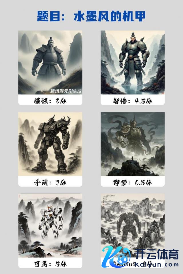 混元和智谱生成的图片则有些奇怪,水墨画作风没已矣的同期,也没会通"机甲战士"这个主体,画中东说念主更像是个古代武士,完全偏离了题目条目。